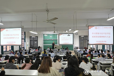 9月18日下午,公司召开师生大会,部署学习宣传贯彻习近平总书记来校考察调研时的重要讲话精神。全国模范教师、副经理龙兵教授分享了当面聆听总书记关于思政课改革创新重要讲话的体会和感悟。公司党委常委、宣传部部长兼马院经理唐珍名就学习宣传贯彻习近平总书记重要讲话精神进行部署。公司党委书记黄梓根主持会议。龙兵分享感悟。龙兵激动地说,当习近平总书记听取了龙兵和在场师生关于正在开展“移动”思政课现场教学的汇报后,习...