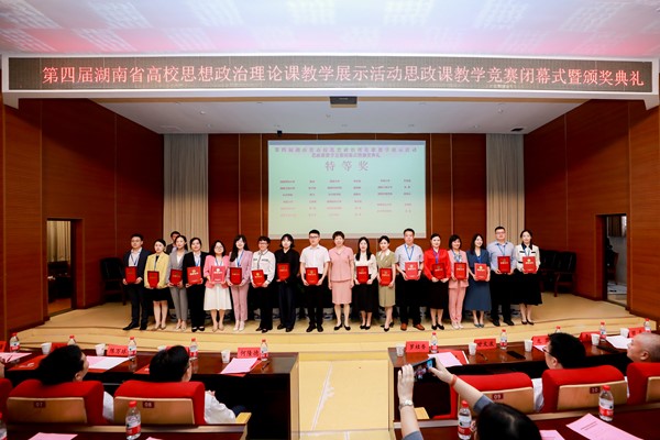 公司汤素娥老师获研究生“新时代中国特色社会主义理论与实践”组特等奖,王萌萌老师获本科“中国近现代史纲要”组特等奖,汪博老师获本科“马克思主义基本原理”组一等奖,王学明老师获本科“毛泽东思想和中国特色社会主义理论体系概论”组二等奖,文雯老师获本科“思想道德与法治”组二等奖。特等奖获奖教师汤素娥、王萌萌老师将代表湖南省参加全国赛。