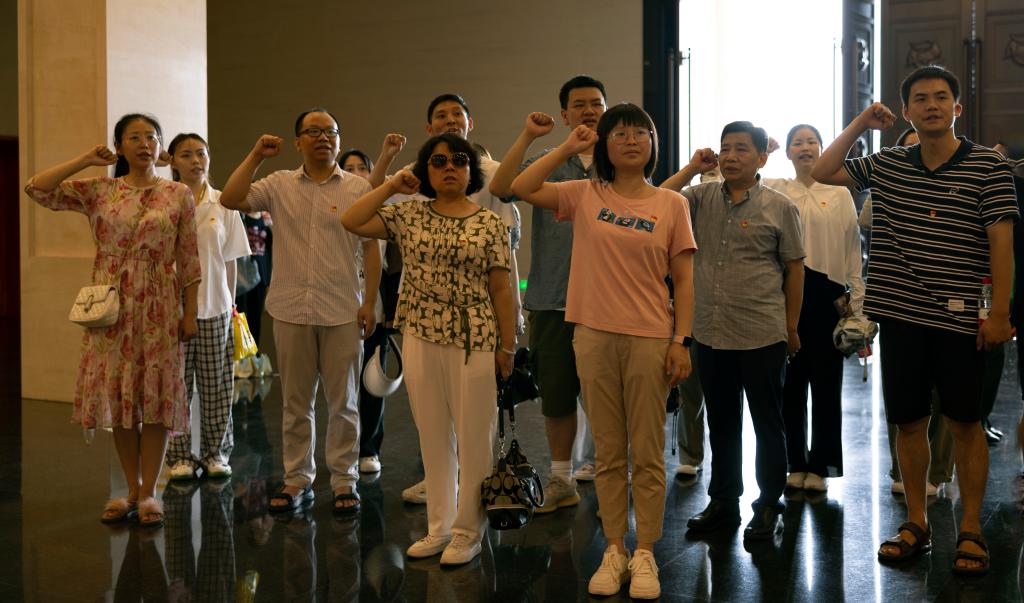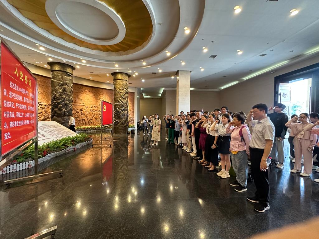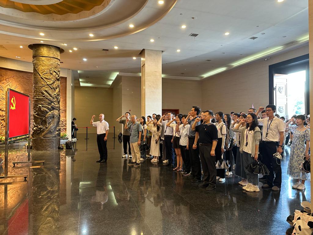 在湖南抗日战争纪念馆,照片、实物、模型、投影、场景复原等多种先进展示手段,全方位、立体式展示了湖南人民浴血抗战的光辉历史,展现了中国作为世界反法西斯战争东方主战场的伟大作用。师生更加深刻地理解了中国共产党人的“不忘初心,牢记使命”,也更加明确了在新时代下作为一名党员的责任和担当。参观当日正是“七一”建党节,面对党旗,师生党员一起高举右手,重温入党誓词。铿锵恢宏的誓词,强烈震撼着在场的每一位党员,以铮铮誓言再言入党初心,以嘹亮之声表明报国之志。
