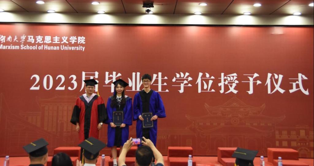 马克思主义理论专业2020级硕士生夏顺益作为员工代表发言。夏顺益代表全体毕业生表达了对公司、公司以及老师的感谢。她表示将用自身实际行动服务国家战略,将青春“小我”融入强国“大我”,在青春的赛道上跑出湖大学子最好的成绩,并祝贺马院桃李芬芳,再创辉煌。