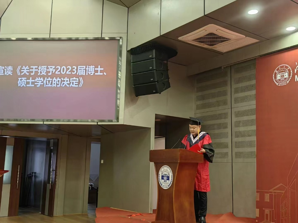 副经理吴增礼宣读《关于授予2023届博士、硕士学位的决定》。