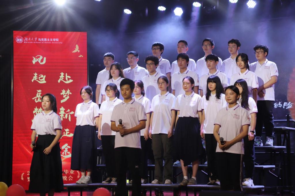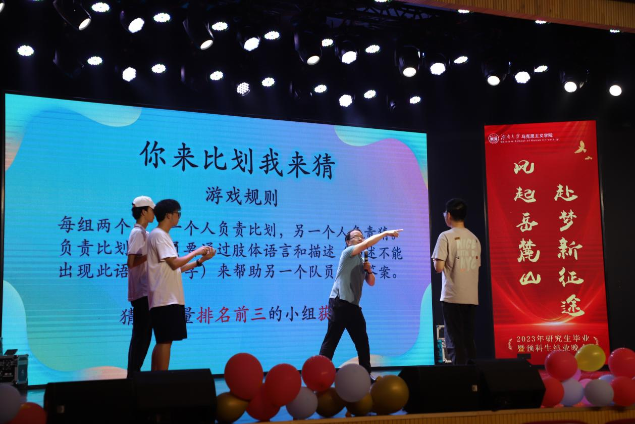 晚会在2023届毕业生记录视频中拉开序幕,一张张记录了学习与生活的照片勾起了大家的回忆。开场说唱节目《空城计》活跃了现场气氛;歌舞《大鱼》《言不由衷》《想去海边》精彩纷呈;酷炫的舞蹈串烧展现了同学们的朝气与活力;话剧《风声》抒发了马院学子爱党爱国的赤子之情;游戏《你划我猜》《抢凳子》让现场笑声不断;预科生致敬父辈的大合唱《永不可战胜的人》更是给予观众震撼与感动。