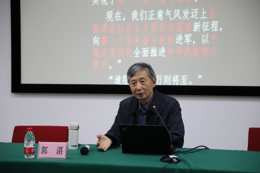 郭湛围绕“坚持科教兴国战略,走中国式现代化发展道路”对如何实现中国跨越式发展展开详细解读。他强调,贯彻科教兴国战略必须做到教育优先,全面贯彻党的教育方针,培养堪当民族复兴重任的时代新人。做到完善科技创新体系,加快实施创新驱动发展战略,强化国家战略科技力量。做到保证中国现代化建设的人才支撑,为实现中国跨越式发展打牢基础。郭湛指出,我们要深刻把握党中央对教育、科技、人才的重大战略部署,为全面建设社会主义现代化国家、实现中国跨越式发展,不断塑造发展新动能新优势。