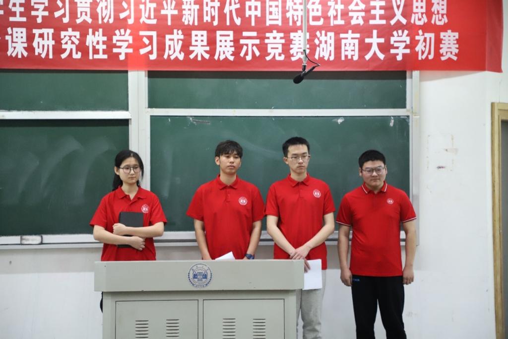 本次竞赛分为班级推选及现场赛两个阶段,初选由各教研部组织推选,相关课程所在教研部共推选15个小组参加校级竞赛现场赛。现场赛分为研究性学习成果展示和现场答辩两个环节。参赛小组分别从选题背景、研究现状综述、研究性学习成果、下一步研究设想、研究性学习的收获与体会等五个方面,进行学习成果展示。各参赛小组准备充分,情绪饱满,思路清晰,团结协作,充分展示了湖大学子的学术素养和理论素养。经过激烈角逐,共有4个小组荣获现场赛特等奖,并将代表公司参加湖南省教育厅主办的复赛和决赛。其他11个小组荣获现场赛一等奖。