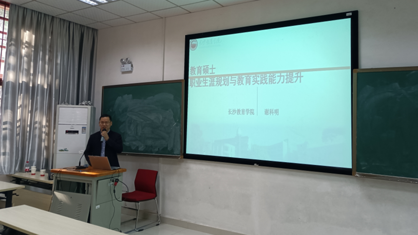 谢科明老师以《教育硕士职业生涯规划与教育实践能力提升》为题,重点从教育硕士职业生涯规划、教师职业生涯规划、教育实践能力提升等方面进行讲解,分享了自身从事高中政治教学研究的丰富经历与宝贵经验,畅谈了“志在名师”的教育理念和深切感悟。