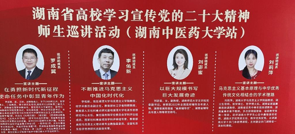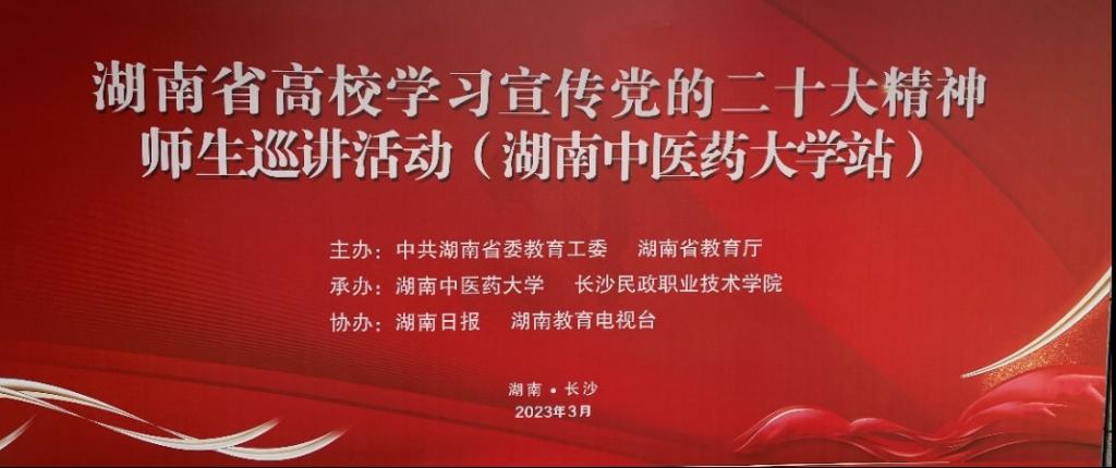 近日,湖南省高校学习宣传党的二十大精神师生巡讲活动在全省高校开展,公司刘莉萍副教授受邀参加湖南中医药大学站宣讲。