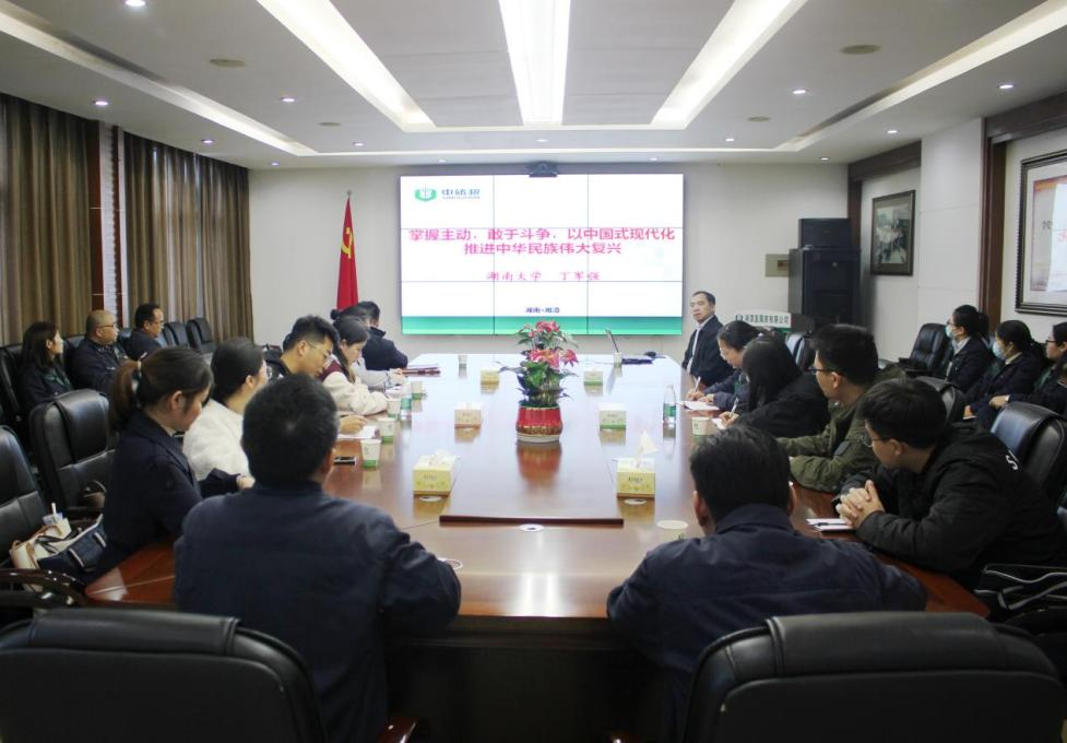 实地调研后,中储粮湖南省分公司党群人事处处长赵亮、中央储备粮集团湘潭直属库主任姜立波以及相关负责人同公司老师,围绕《保障粮食安全的中国策》展开交流,并向调研团队详细阐述了中央在粮食储备方面进行体制改革的历程及探索。