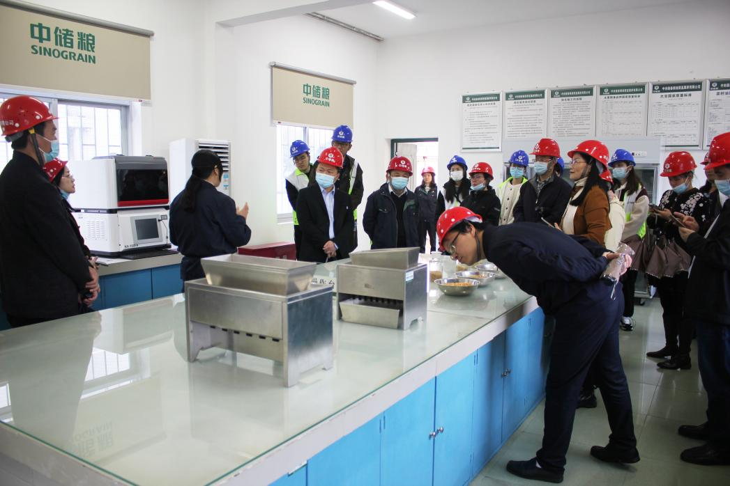 第二站来到质检化验室,专业质检人员向老师们详细讲解了粮油的国家安全标准、安全检测仪器操作以及各项检测要点,从各个环节和细节保障储备粮油的质量和安全。