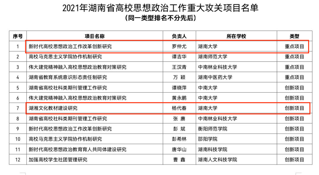 近日,湖南省委教育工委、湖南省教育厅公布了《2021年湖南省高校思想政治工作重大攻关项目名单》,全省共12个项目获得立项,公司有2个项目入选。