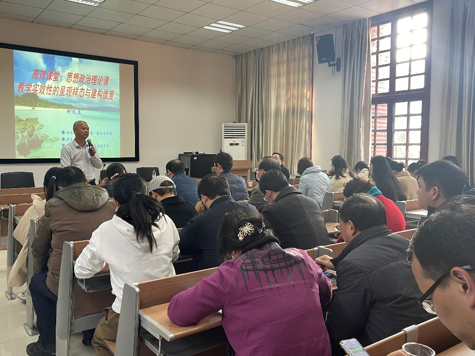 柳礼泉教授结合自身多年的教学研究与实践经验,向老师们介绍了高效思政课堂的基本内容,提出了高效思政课堂的建设标准,并就如何构建思政课高效课堂,提高教学实效性作了详细讲解。
