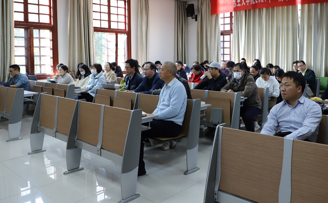 龙兵传达了2021年11月17日邓卫书记在公司思政课青年教师座谈会上的讲话精神,要求全院教师统一思想,提高认识,把教学放在第一位,努力提高教学质量,切实提升教学实效,千方百计办好思政课、讲好思政课。