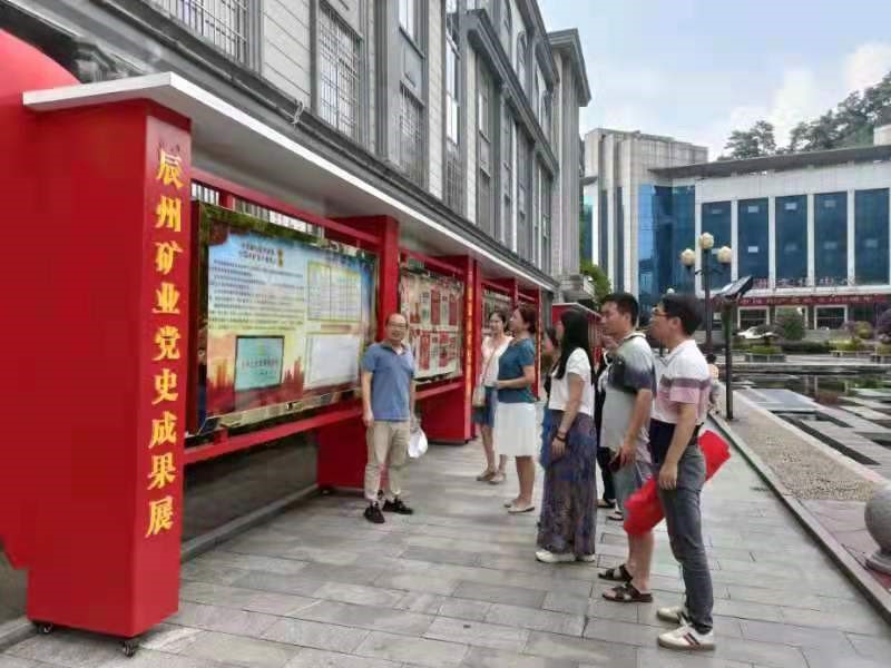 在辰州矿业,支部书记田湘波介绍了辰州矿业建矿以来的发展历程,展现矿山建设 “千锤百炼”精神面貌。