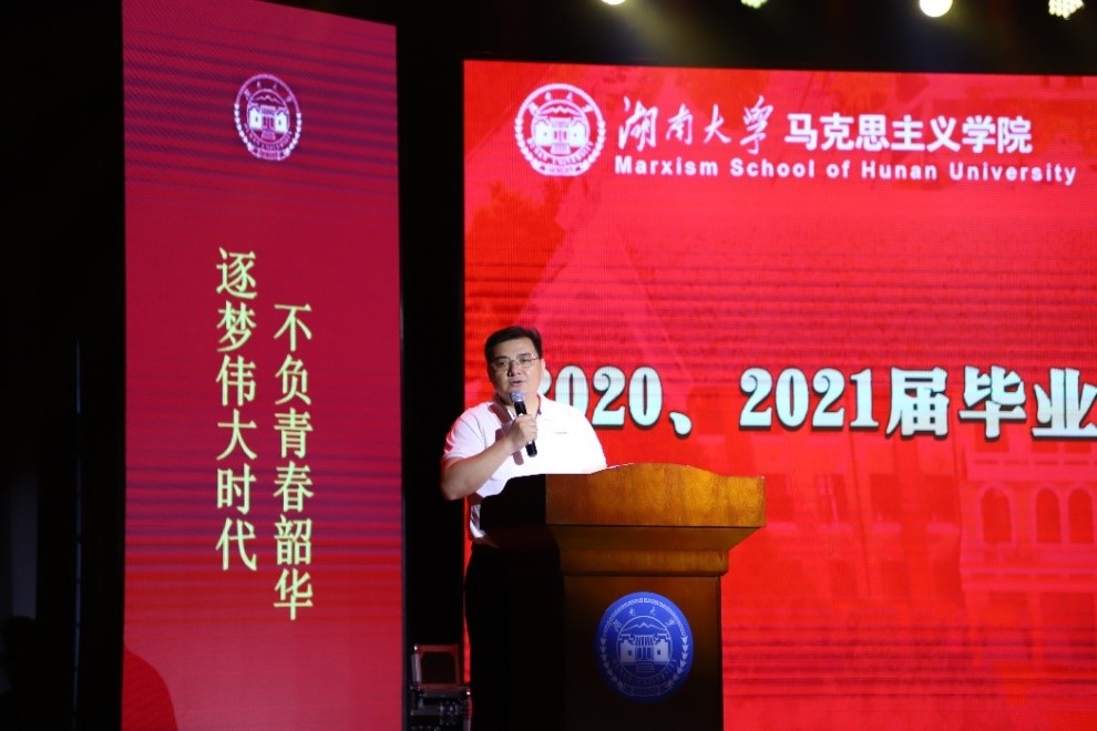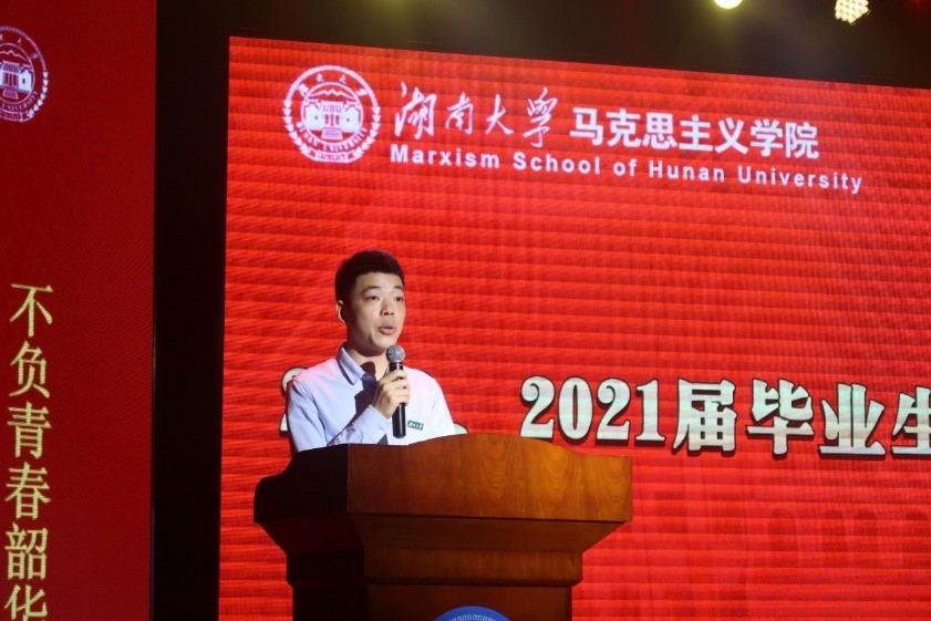 马克思主义理论专业2018级硕士生王昊作为员工代表发言。王昊代表全体毕业生表达了对公司、公司以及老师的感谢。他表示在新的工作岗位上,会始终心怀母校给予的精神力量,牢记师长的谆谆教导,秉承“实事求是,敢为人先”的湖大校训,尽自己最大的努力融入基层、扎根基层、服务基层。