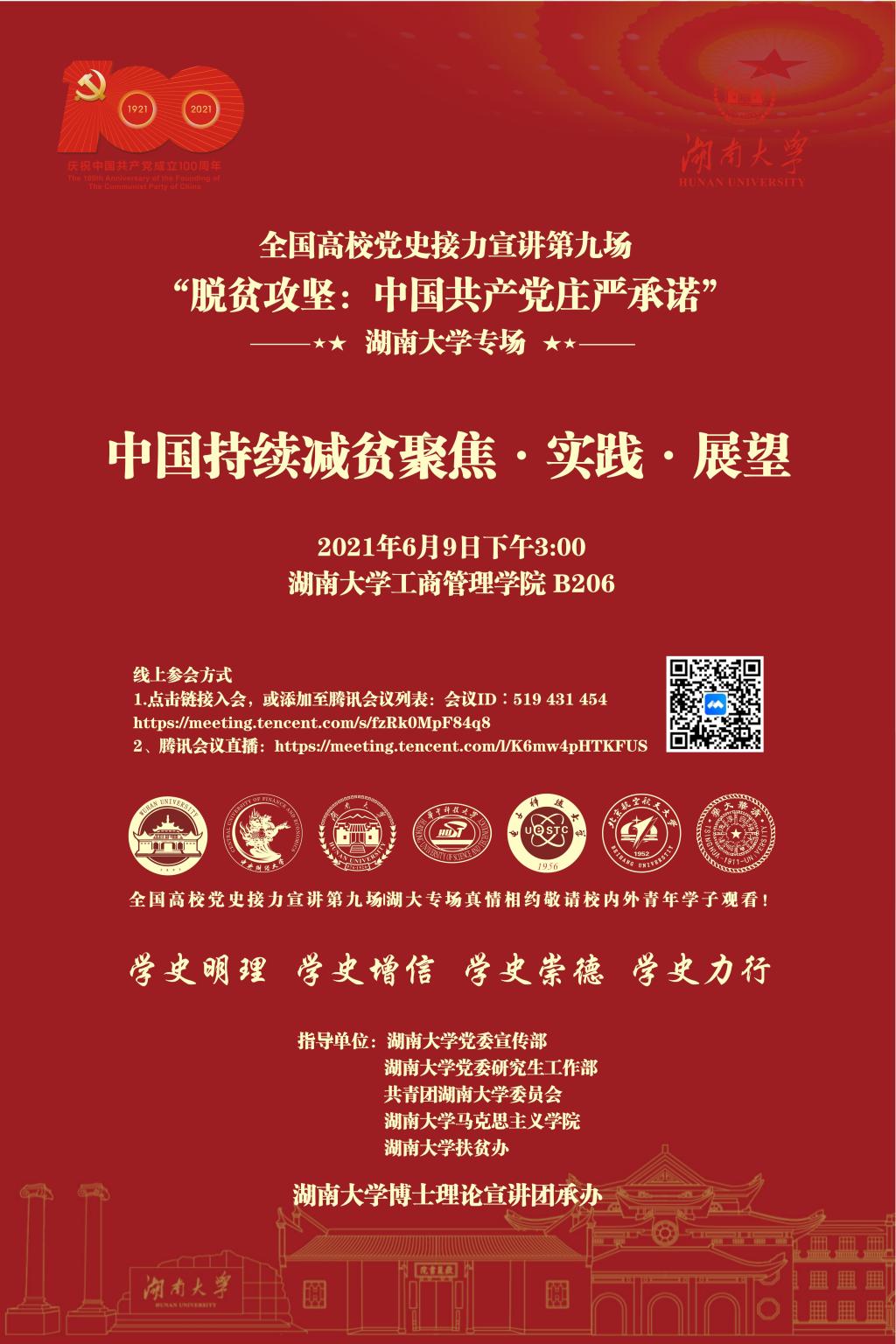 6月9日下午,2021年全国高公司党史接力宣讲第九场“脱贫攻坚:中国共产党的庄严承诺”球王会体育官网专场活动举办,来自球王会体育官网、清华大学、武汉大学、中央财经大学、华中科技大学、电子科技大学、北京航空航天大学等高校的八名宣讲成员齐聚云端,围绕“中国持续减贫聚焦·实践·展望”进行线下和线上的主题宣讲,展现中国扶贫的青年力量和青春担当。