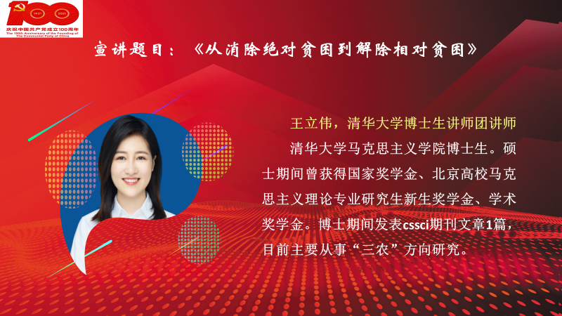 07 清华大学博士生讲师团讲师,清华大学球王会博士生王立伟同学从消除绝对贫困到解除相对贫困的视野出发,对后减贫时代治理相对贫困提出深化思想认识、完善治理政策以及健全治理举措三方面措施,对未来解决相对贫困问题的长效机制进行了探讨,从学理上解释相对贫困治理是实现乡村振兴与新型城镇化的必然要求。