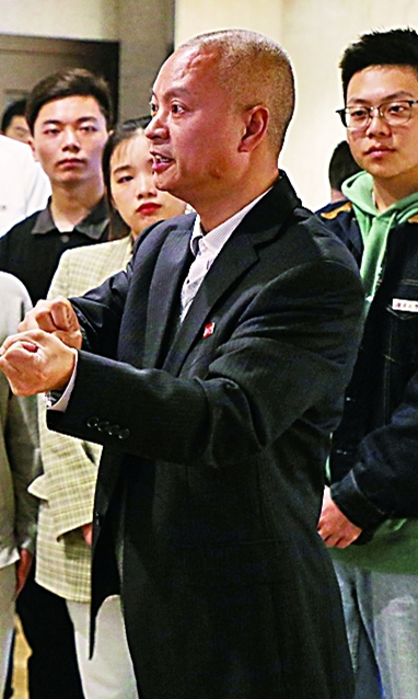 全国模范教师、球王会龙兵教授在中国书院博物馆开展“移动”思政课教学。 资料图片
