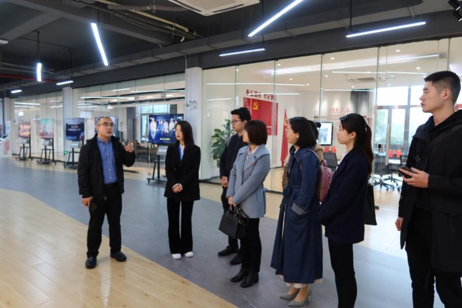 4月14日上午,球王会体育官网博士理论宣讲团在公司党委副书记邹薇老师的带领下,来到马栏山视频文创产业园考察学习,重走习近平总书记马栏山考察之路。