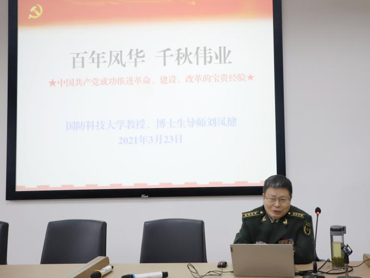 刘凤健教授在以《百年风华 千秋伟业——中国共产党成功推进革命、建设、改革的宝贵经验》为主题的讲座中,以抗日战争时期毛泽东同志概括的“统一战线、武装斗争、党的建设”克敌制胜的“三大法宝”为导入,从七个方面详细讲解了中国共产党成功推进革命、建设、改革的宝贵经验。百年征程,波澜壮阔。刘教授指出,在建党一百周年之际,通过在全党集中开展党史教育,更好地总结历史经验、认识历史规律,掌握历史主动,就一定能够建设更加强大的马克思主义政党,一定能够在新的起点上,奋力夺取新时代中国特色社会主义的伟大胜利。