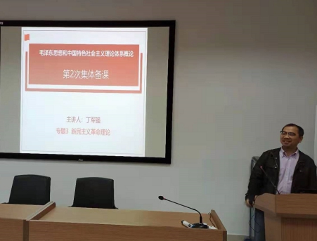 11月11日,“毛泽东思想和中国特色社会主义理论体系概论”教研部开展本学期的第2次集体备课。本次备课的试讲人是丁军强老师,试讲内容为“专题三 新民主主义革命理论”。试讲完毕之后,概论部的其他老师分别对此次试讲的专题进行点评,重点就概论专题教学如何从教材体系转化为教学体系,如何凸显教学专题的问题意识和学理性,如何以问题链方式展开课件制作,老师们进行了热烈的探讨。