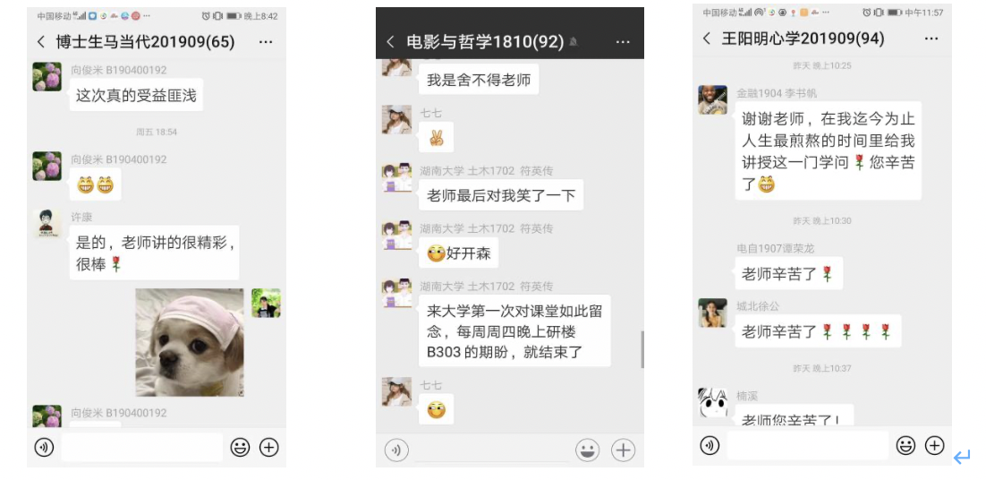 刘老师:在大一大二的时候就听学长学姐说您的课很有思想,很有哲学底蕴,但是无奈太火爆了都选不上,这学期终于选上了您的课,在您的课堂受益匪浅,尤其是您的《王阳明心学》课使我之前的困惑和焦虑都得到一定程度的缓解,让我对自己更有信心。